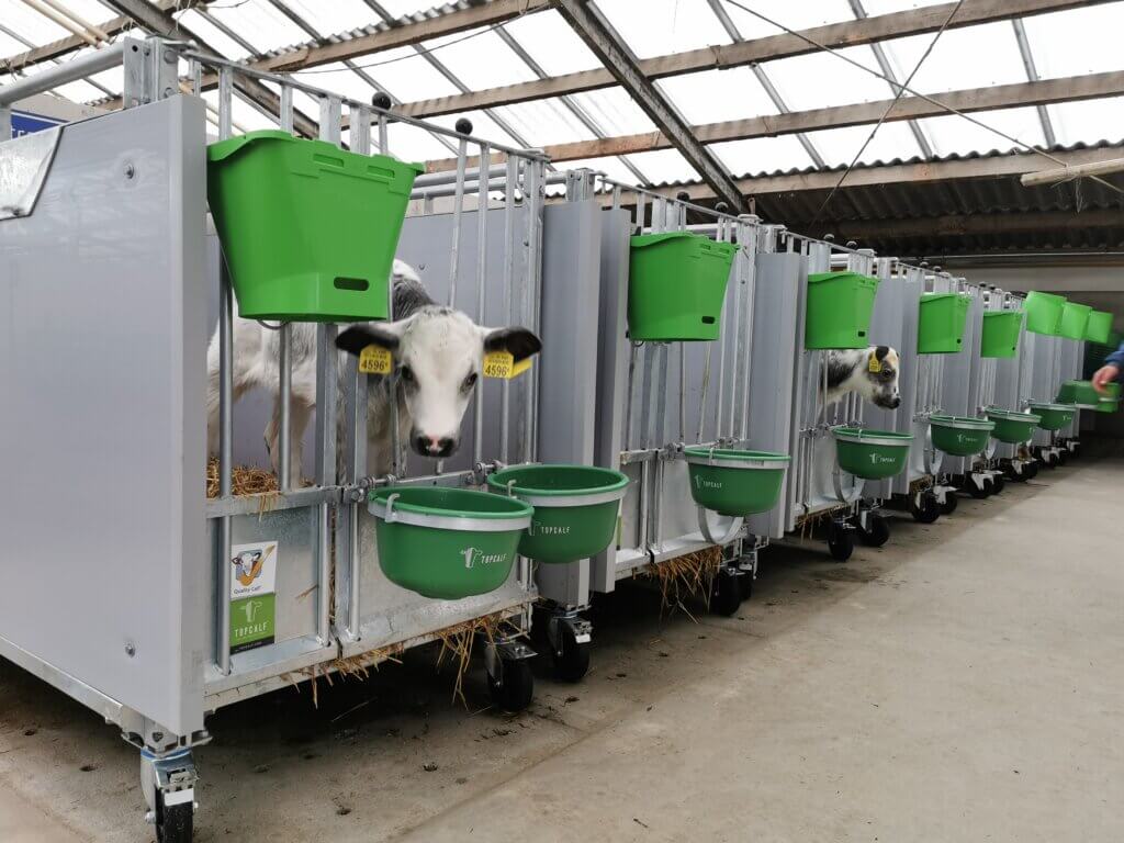 The Topcalf Mono Calf Pen is a mobile box that ensures a healthy start for the individual calf. The construction, consisting of galvanized steelwork with plastic walls and a removable slatted floor, is easy to clean and offers a long service life. With an interior dimension of (LxW): 1700×1000 mm, the calf pen complies with current regulations.