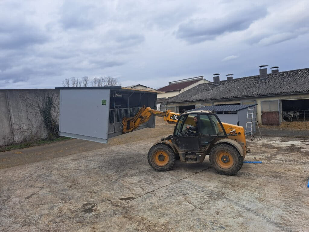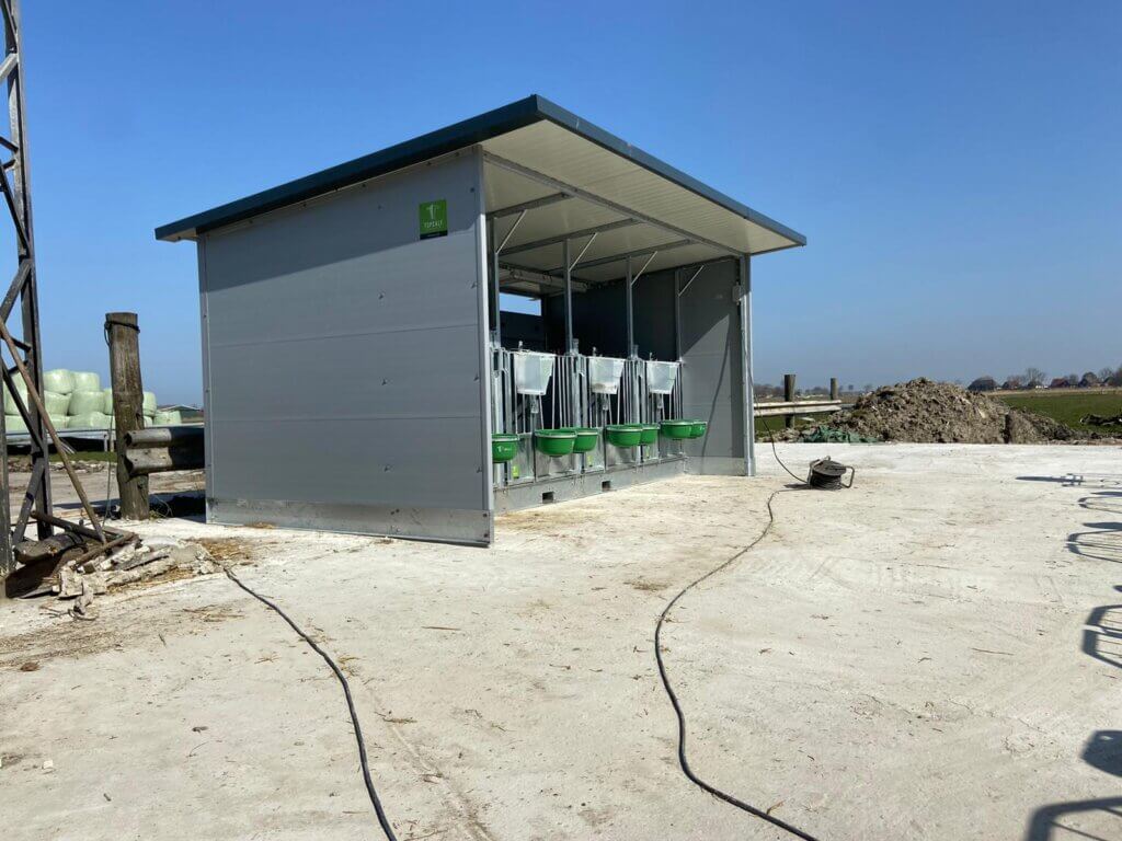 ✓ Protection from wind and weather – The extended side panels and 1500 mm roof overhang keep both calves and the farmer dry and sheltered from the wind.